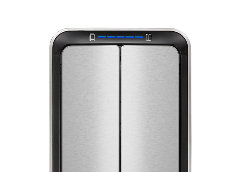 Award winning motion sensor bin with an interactive display and two removable, colour coded compartments. A space saving design, fits flat against a wall.
