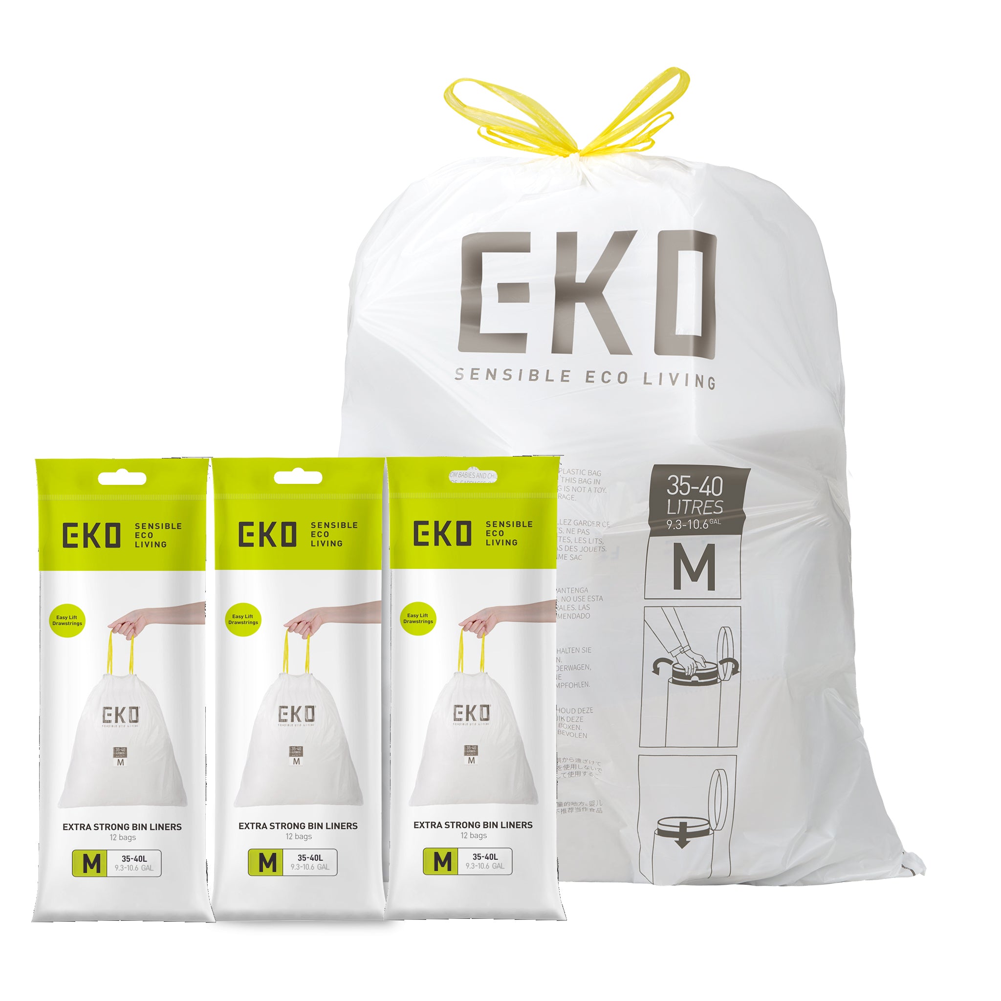 [RELIABLE, LEAK-RESISTANT STRENGTH] Made from durable 1-mil thick material with a layered construction, EKO heavy duty bin bags are designed to resist leaks, punctures and tears — delivering dependable, mess-free performance for everyday household waste.
